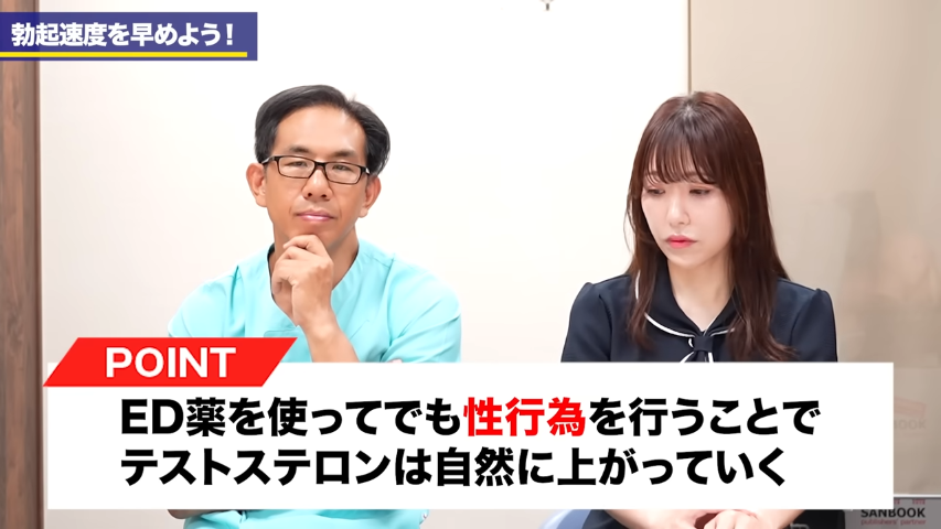 橘:じゃあそういった勃起力というか、EDの薬を使いながら、頻度を高めていくというところを心がけていただく…