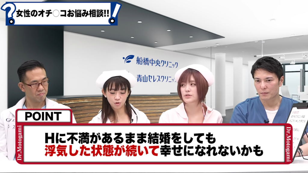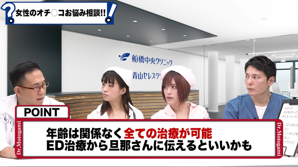 男性カウンセラー:クリニックには男性だけではなくて彼氏や旦那さんのオチ○コやエッチの悩みについて女性の方々からの悩みも非常に多く、先生寄せられますよね。