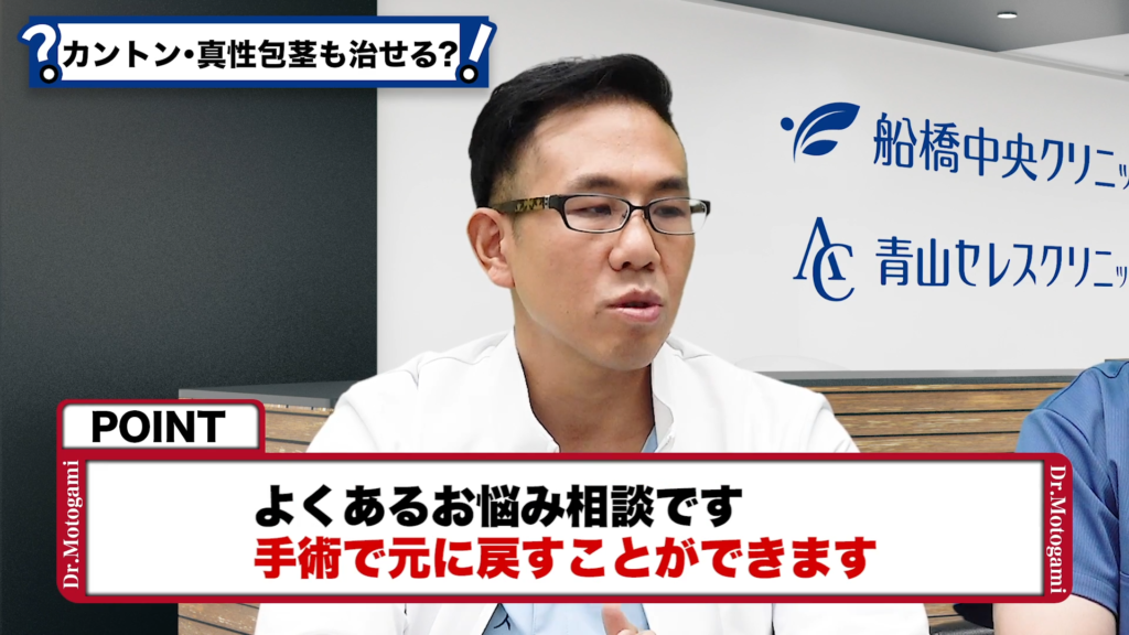 元神先生:これは実は非常にたくさんあります。やはり昔は剝けたけどいつの間にか剥けなくなったとか、そういった相談はよくあります。これは手術でまた同じような状態にすることができますので。