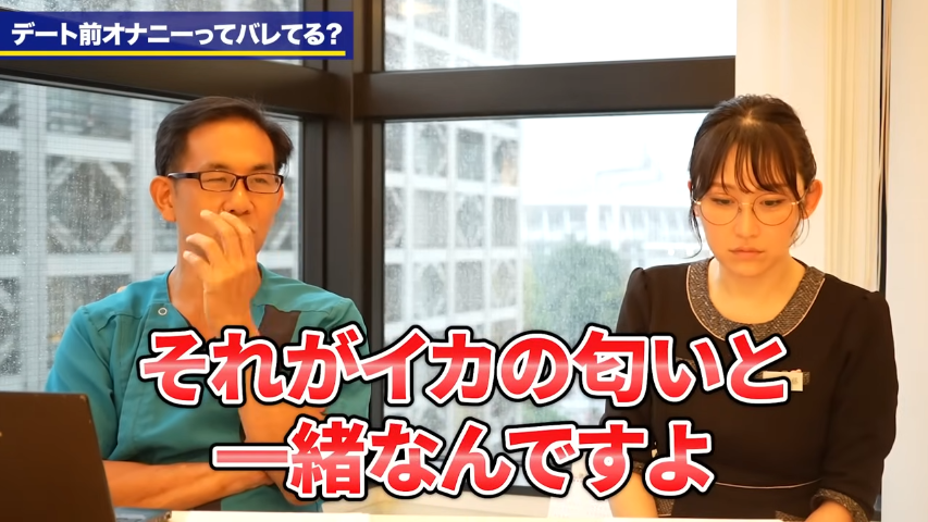橘:もう1つ今回のテーマとしてあるのが、女性にバレるかという話なんですけど、これ結構YouTube上でですね、男性が抜いた直後は女性は気づく?みたいな趣旨の動画が結構あるんですよ。これ女性側からすると、匂いとかを含めて分かったりすることってあるんですかね?