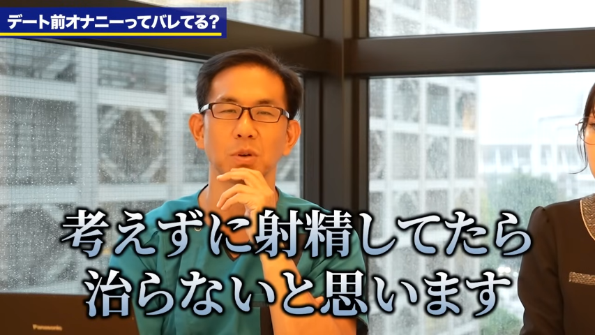 橘:これはですね、ちょっとした悩みというか、早漏に悩んでいると毎回性行為の時にはすぐにイッてしまうと相手を満足させられないというお悩みの方の中にいらっしゃることなんですが、実際に会う前に1回抜いておくと。デート前オナニーをすることで早漏を予防しておこうというような試みになるんですけれども、これがですね、実際に1回出すことが早漏予防として適切なのかなども含めてですね、今日はお話をしていければなと思うんですが。伊藤さんデート前に1回出してから来るみたいなのは率直にどう思いますかという質問なんですけど。