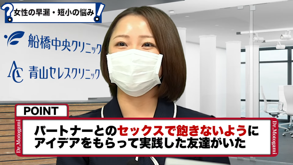 男性カウンセラー:女性から寄せられた、男性の短小、早漏に関する悩みについて、一般女子代表石橋さんの意見も交えながら元神先生に解決策を伺いたいと思います。
