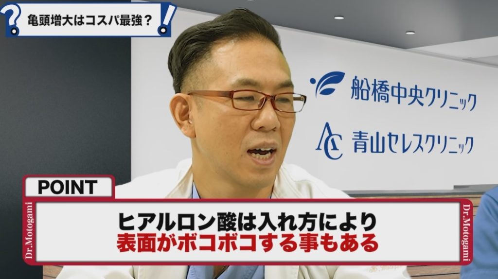 元神先生:入れている素材によっては、わずかに残っている物もあるんですよね。コラーゲンがちょっと残ったりすんですけど。ヒアルロン酸はほとんど残っていないですね。あとは変な入れ方をするとヒアルロン酸はすごい表面に出てきて表面がボコボコする事もありますけどね。