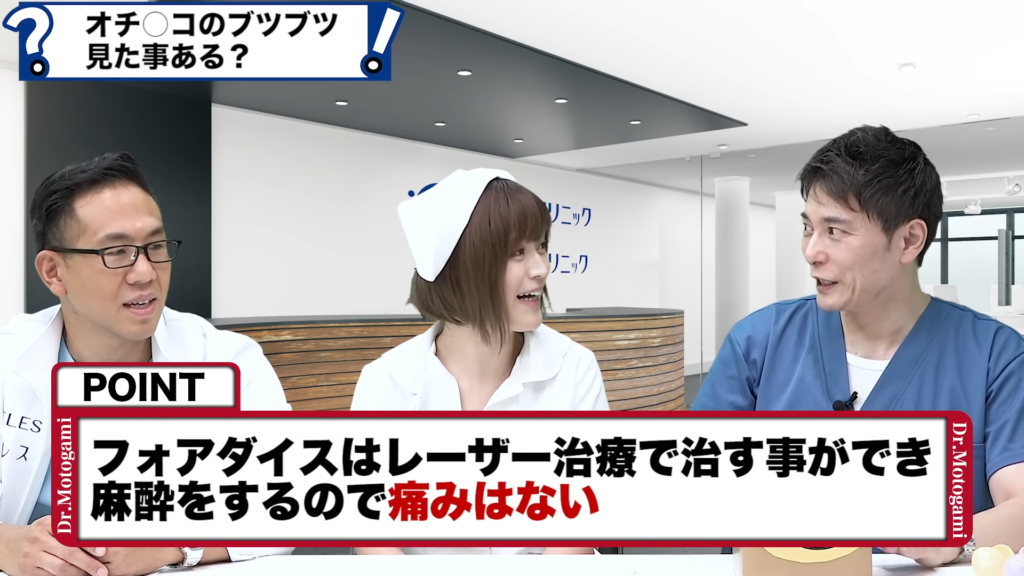 元神先生:性病のブツブツもありますし、いわゆるフォアダイスっていってニキビみたいな性病じゃないブツブツもあるんですけども、見たことあります?