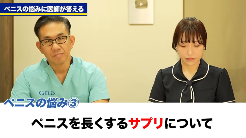 橘:では次、「ペニスを長くするサプリ」。これもまた長くするというキーワード出てきましたけれども、次はサプリですね。実際サプリで長くしたいというふうに見受けられますが、これはいかがでしょうか?