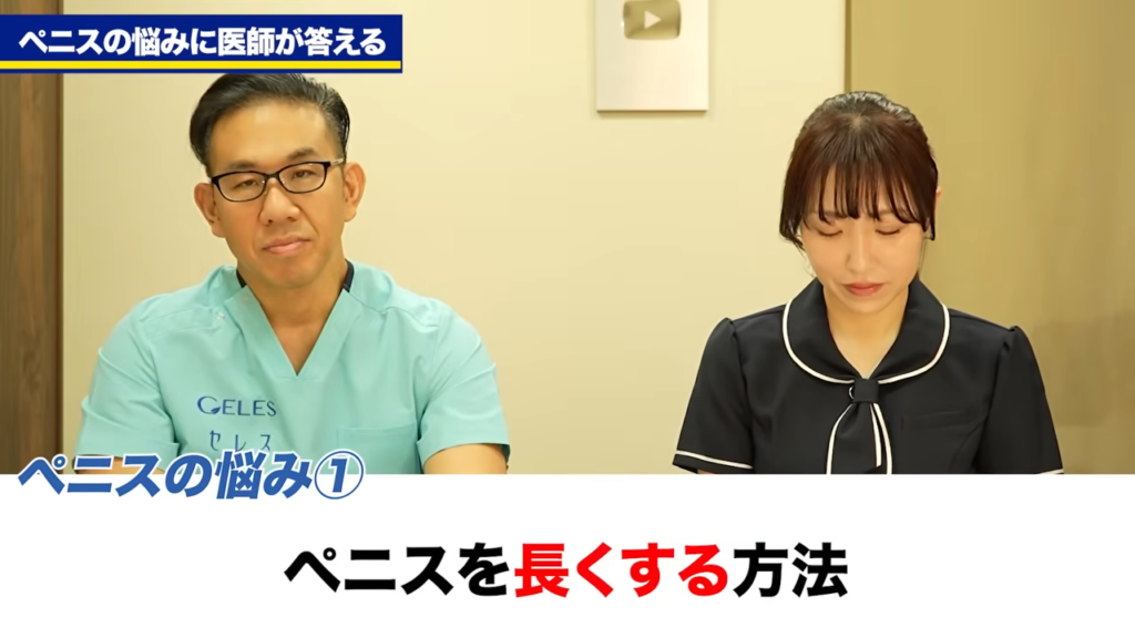 橘:まず1つ目がですね、「ペニスを長くする方法」ということで。やっぱり皆さんペニスを長くしたいんでしょうね。長さ気になってる方多いと思います。先生、じゃあこの長くする方法というのは?