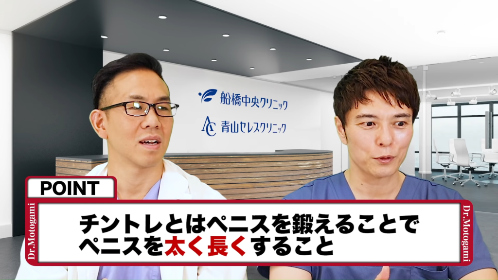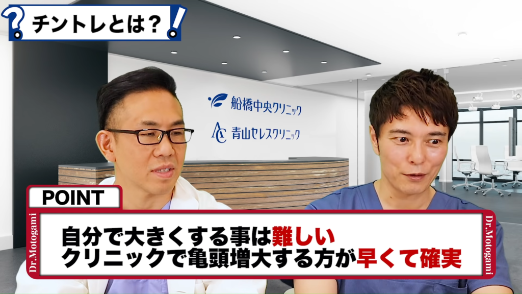 男性カウンセラー:今回はチントレを私がネットパトロールしてきました。youtuberゆいさんという方の番組で「Love&Sex教育TV」という番組があるんです。セックスの機能アップ、仮性包茎を治す為に「チントレで亀頭を大きくしましょう、長くしましょう」という主旨のものです。元神先生には「チントレは安全なのか?効果があるのか!?」医学的な見解から教えて頂ければと思いますので、お願いします。