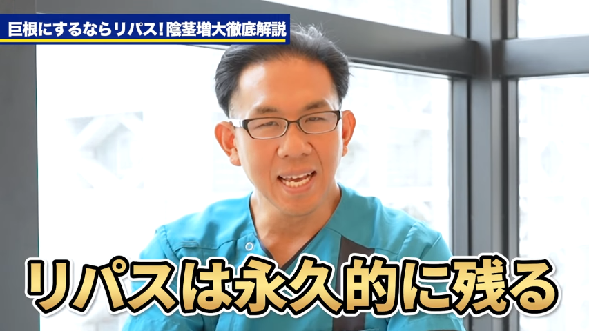 元神先生:女性の満足度って長さよりも太さが大事と言われてるんですよね。リパスは太さが本当に永久的に、一度治療すれば得られますので、その点が非常におすすめできるポイントですね。1回の治療で済みますのでね。