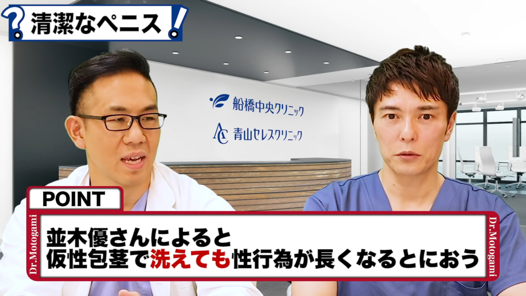 元神先生:性行為の前に洗って、仮性包茎の状態であれば皮の中もしっかり洗えますからいいと思うんですけど、優さんいわく、性行為が長かったりすると、やっぱり、またにおってくるとはおっしゃってましたね。陰毛の量とかにもよるんでしょうけど。