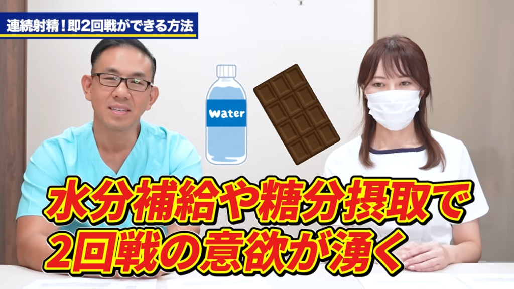 元神先生:まあ、それは単純に体力回復は大事ですよね。2回戦ありきで頑張るならですよ、水分とか、もちろんマラソン走る時みたいにチョコとか糖分を蓄えた方が絶対いいですよね。1番手っ取り早く2回戦を挑める方法で、ある程度確実性があるのはED薬を飲むことです。バイアグラとかそういう薬を飲むと、賢者タイムがグッと短くなるという、一応データもあります。