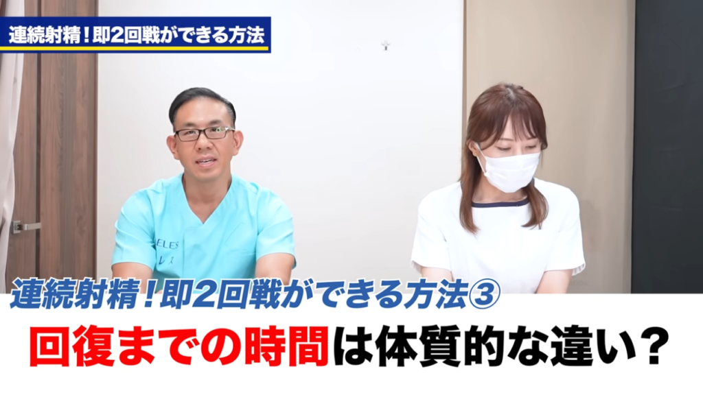 橘:じゃあ、まあ日常生活の部分で、生活習慣っていうところを整えることによって、賢者タイムの時間を短くして、2回戦もしやすくなるみたいな効果が期待はできると。