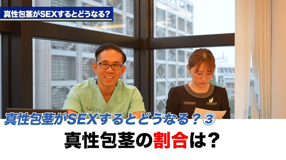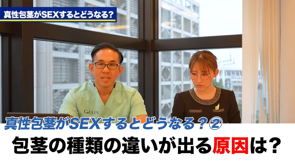 橘:これまでも元神チャンネルでは、包茎の治療についての解説などもお届けしてきましたけれども、今回はその中でも、いわゆる真性包茎、そしてその真性包茎と性行為の関係についての企画となっております。「真性包茎ってセックスできるの?」とか、「治療しないとどうなるの?」と疑問を持たれている方も多くいらっしゃると思いますので、今回は先生に、この真性包茎とセックスの関係性について詳しく聞いていきたいと思います。では早速なんですけれども、そもそもこの真性包茎というものが、実際どういうものなのか、ちょっとここをまず詳しく教えていただけますか?