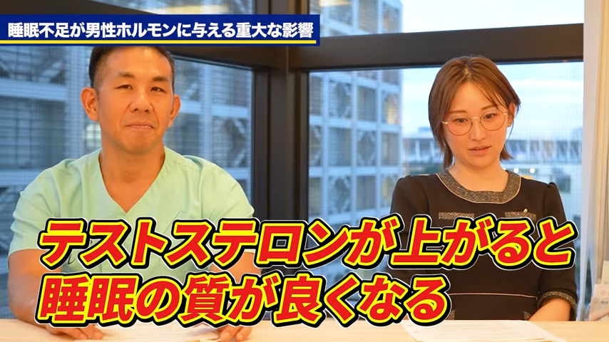 橘:あ、そうなんですね。じゃあもう寝不足でテストステロン下がったら、余計質も悪くなって悪循環になっちゃう。
