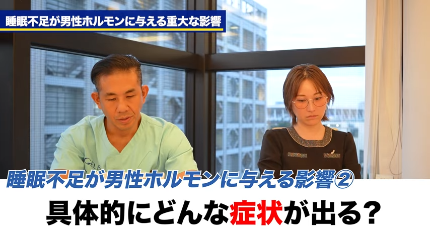 橘:では今回はですね、この睡眠不足が引き起こす男性ホルモンへの悪影響というものについて、今日は先生に詳しく聞いていきたいと思います。