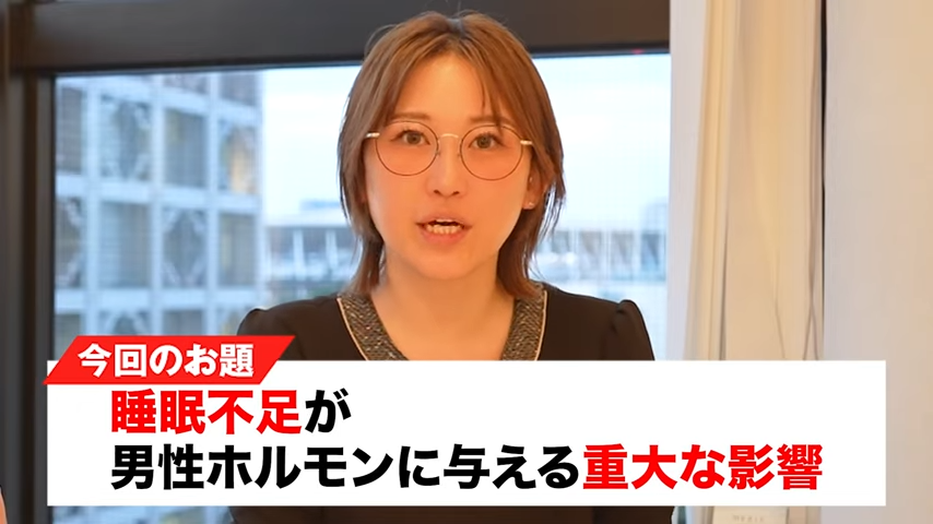 橘:皆さん最近ちゃんと睡眠時間を取れていますか?忙しくてなかなか睡眠時間が確保できないという方は要注意。実はこの睡眠不足が、男性ホルモンに与える影響がやばいということなんですが、これ先生、本当でしょうか?