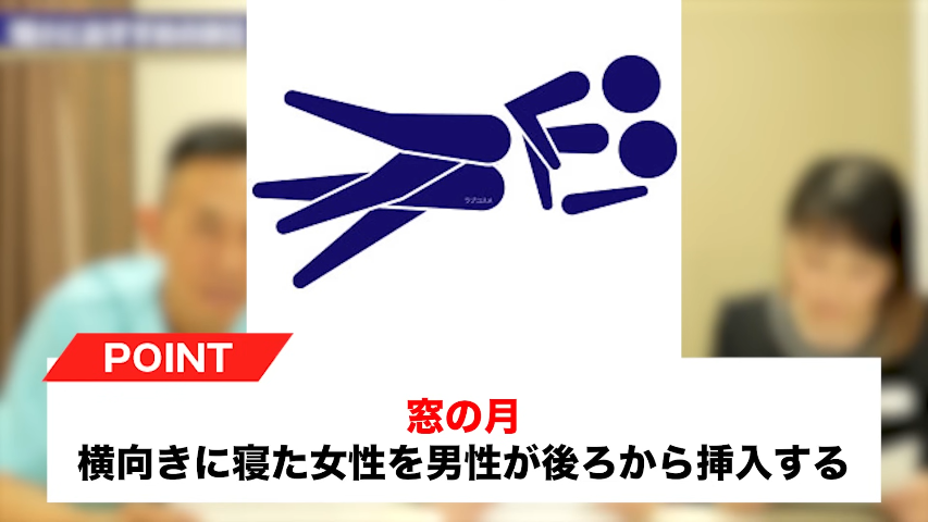 元神先生:多分。これこそAV男優に説明してほしいですね。何かやってみたい体位とかありますか?窓の月とか、窓の月はあれですよね、AV女優の北条さんがおすすめしてたやつですよね。寝てのバック。