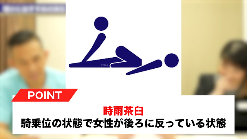 橘:この上から2段目一番右端の、これ何て読むのかな?時雨茶臼?これ多分騎乗位の状態で女性が後ろに反ってるような感じ。