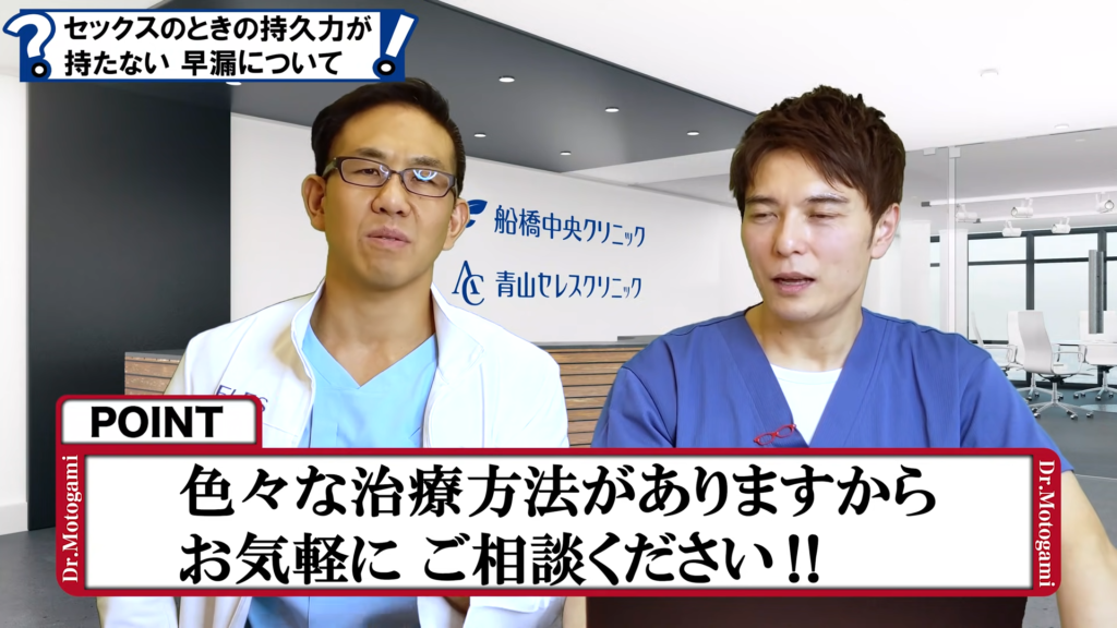 男性カウンセラー:元神先生、早漏の患者様へ僕も含めて、まとめの一言をお願いします。