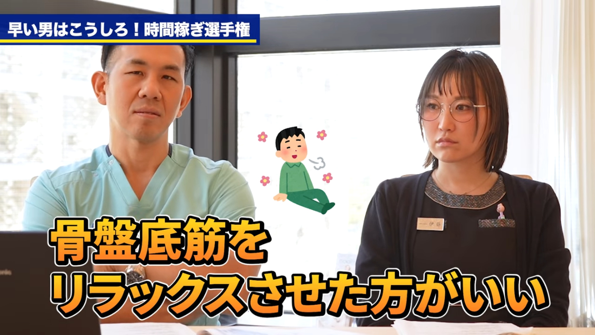 :力んじゃう人、多いと思いますので、これはもう力を抜いて性行為することで、より時間を長くできると。腹式呼吸とかしながらという感じですかね。