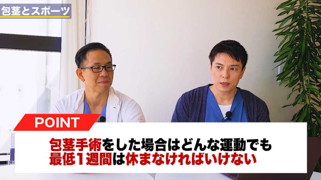 男性カウンセラー:結構、本格的にされてる方々っていうのは今後ルーティンで必ず練習があるって方が多かったんですけれども、スポーツの内容によって包茎手術の注意事項って変わりますか。
