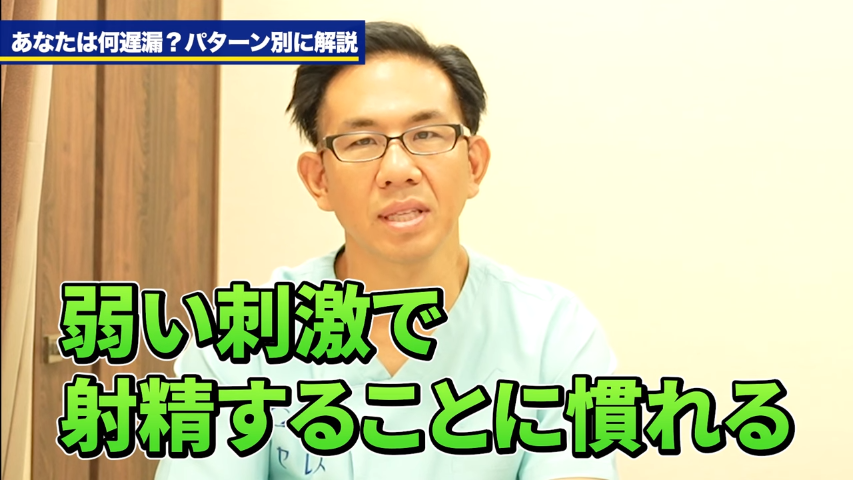 元神先生:強い刺激に慣れてしまって射精できないっていうのは、鈍麻性遅漏といいます、医学的には3つあるんです。鈍麻性遅漏、衰弱性遅漏、心因性遅漏。その3つですね。