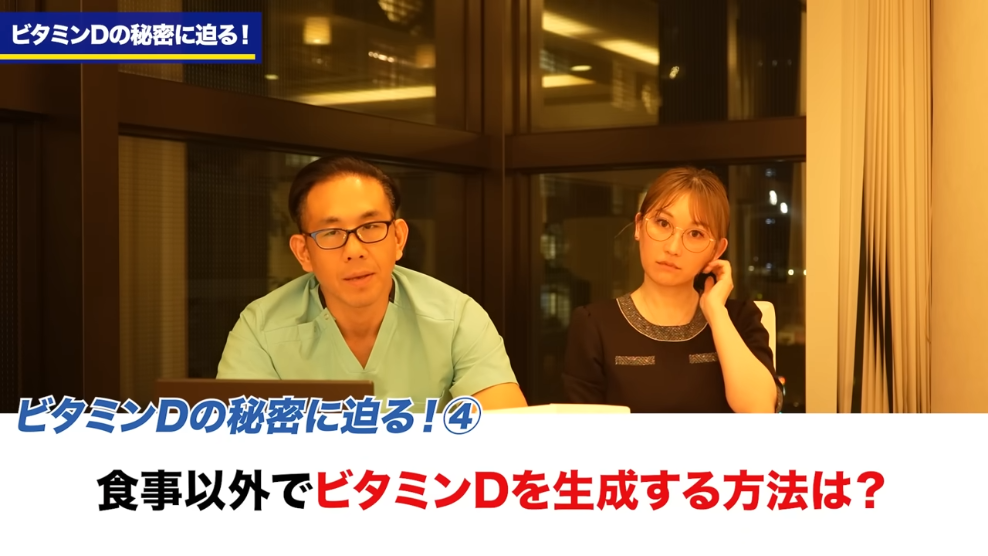 橘:ではその食事以外でこのビタミンDを生成するための方法っていうのはどうでしょうか?